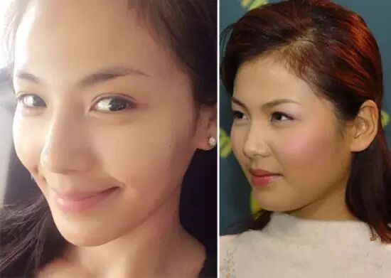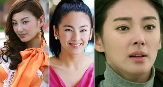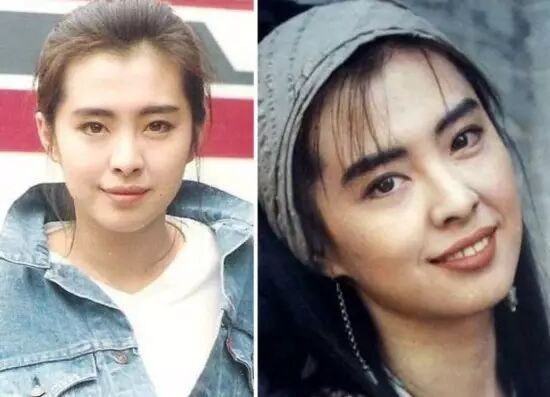 仔细看来,整形前后对比气质变化的确很大,左边两图单眼皮旧照更清纯可爱,右图有种成熟感,与角色不服,难怪星爷不满意。