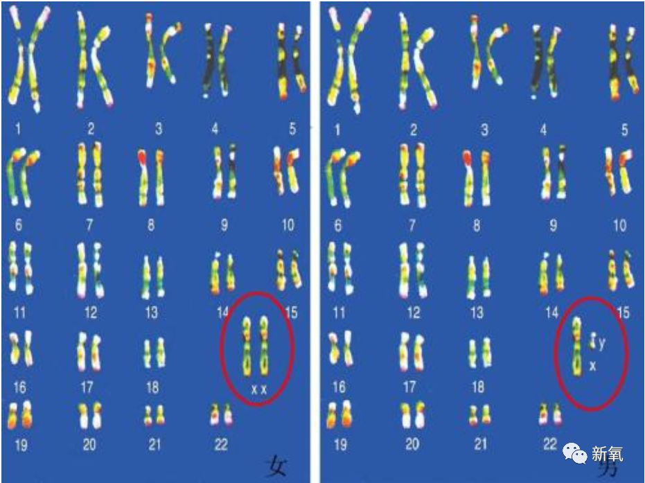 首先我们从概率上来解释这个问题。先给大家复习一下初中生物,每个人的染色体都是下图这样的,有22对常染色体,1对性染色体。