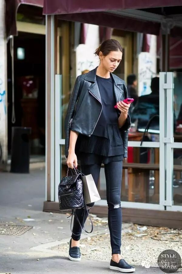 换季的时节,不知道穿什么颜色,就穿黑色装吧,准没错的,搭配一条黑色裤子,显瘦又百搭,脚踩一双黑色懒人鞋,休闲时髦范。