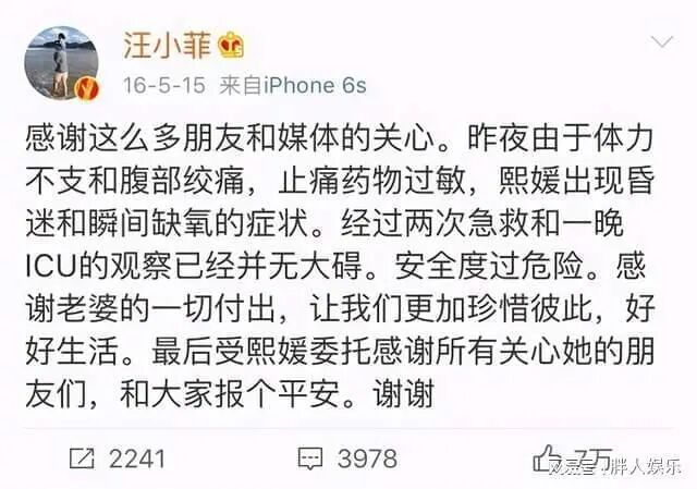徐熙媛的妈妈则表示:“熙媛说的是气话,离什么婚?我会劝熙媛,熙媛和小菲都放心不下小孩,我会要他们夫妻俩先忍一忍。”