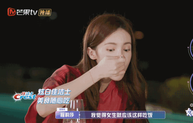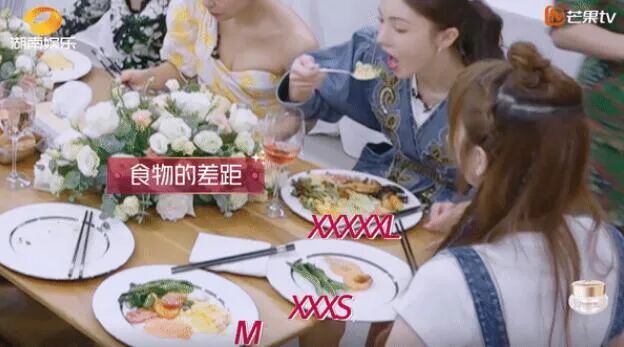 她录《浪姐》也展示过惊人的食量,在金莎算热量的时候,她才不管呢,胡吃海喝起来。镜头给两人推了一个对比,金莎那份塞我牙缝都不够,金晨的,管饱。