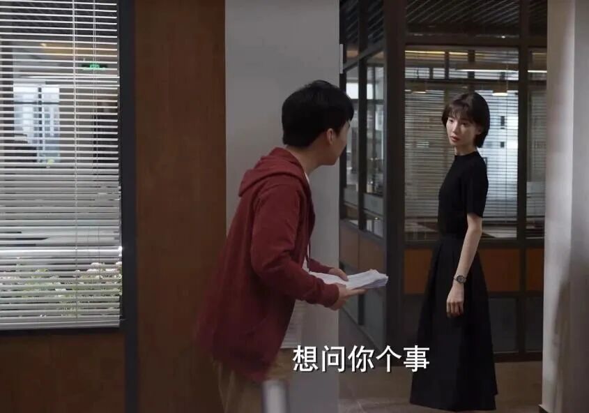 第一集开始十来分钟,郭麒麟跑错了面试的律所,着急忙慌从楼梯间冲出来,抬头就撞上在等他的金晨。镜头按郭麒麟的视角推过去,亮出金晨一个侧身画面。