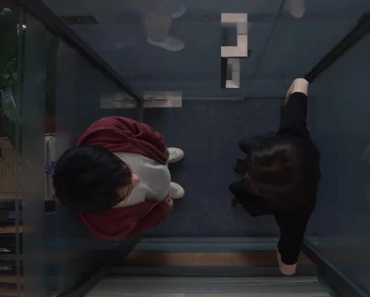 比如金晨找他谈话会约到一间玻璃房。镜头像跟郭麒麟有仇似的,从头顶俯拍两个人。其实单看郭麒麟没觉得有啥,但看了成点状的金晨再看他,他浑圆成块状。