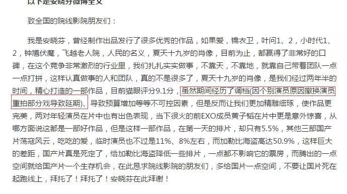制片人安晓芬在恳求多排片的公开信中透露了这样一个信息: