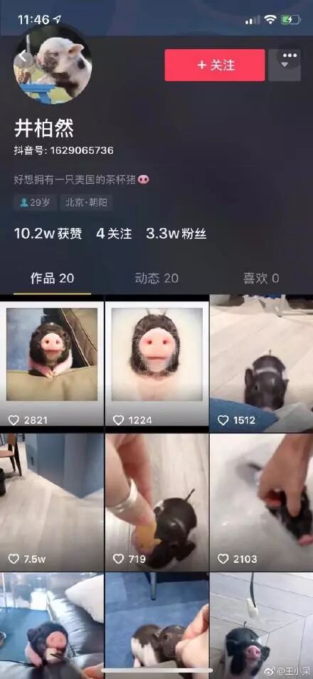 说起来这还是因为它的主人井柏然的力捧,他注册了一个抖音账号,时不时更新自己养猪的日常,努力在互联网上帮它宣传,才让这只猪成为了网红。