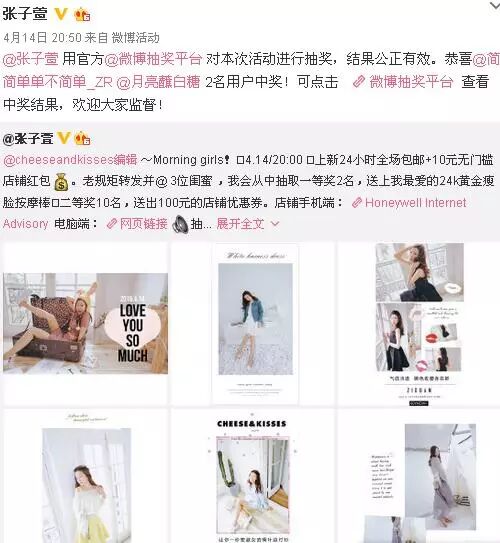 微博一天十多条,全都是卖衣服卖衣服卖衣...真是够拼的样子