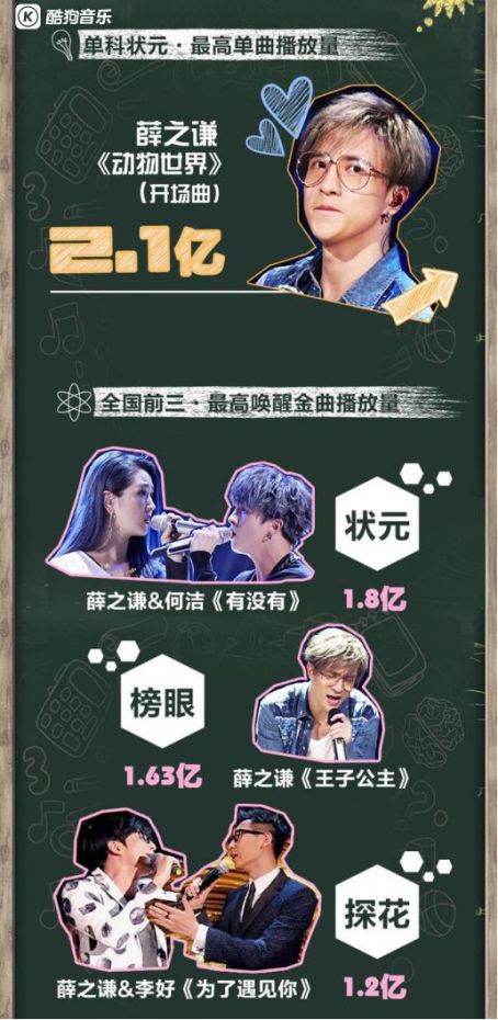 另外,根据酷狗音乐的独家数据显示,光是薛之谦一人在第一季《金曲捞》中演唱歌曲的总播放量就破了7亿。