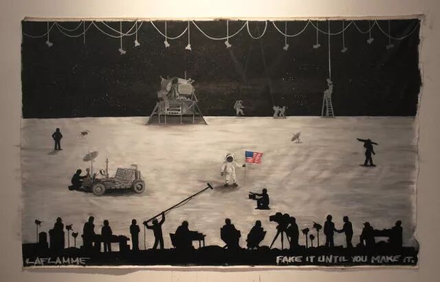 2012年1月,我开始玩新浪微博(起步比较晚,但是也已经加V了呢,现在也不玩了),第一个ID是我的第一个英文名Khimmin,第二个ID叫做“假装在南非”……好像是因为想去瞻仰南非国父纳尔逊·曼德拉,具体原因忘记了。可能我心里特别渴望去南非吧,所以才取了这样一个ID,虽然不知道如何才能到达,但是我知道,我某一天一定能去,我挺相信心理暗示的。有一句名言送给大家,Fake it until you make it!能看懂下面这幅画么?登月训练,照片右下角写着这句名言。如你所知,人类真的登上了月球。