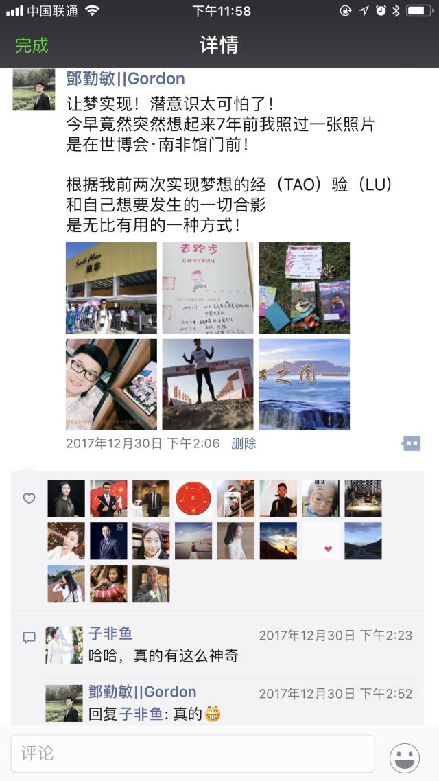 那天早上,当我突然想起这3件事情的时候,我心头一惊!这就是“预兆”!这就是“痕迹”!所以我“大声”的告诉我的朋友们,我2018年的小目标就是——带上女神,去南非!