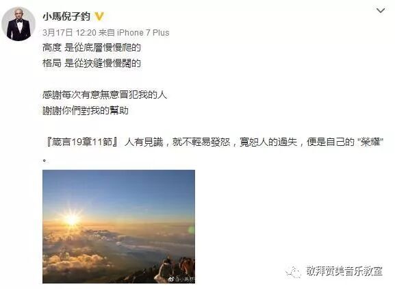 我们从小马(倪子钧)微博发的关于“宽恕”的截图,可以看出,他完全因为信仰而谦卑下来了