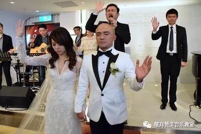 小马(倪子钧)与同为基督徒的妻子,在婚礼上接受牧师的祝福祈祷