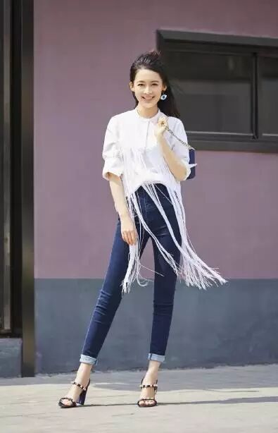 好的衣服穿搭当然需要一副好的身材架子,牛仔长裤配高跟鞋身材好的没法说啊。