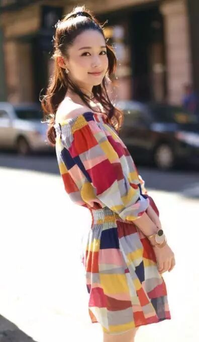 穿这件格子拼接连衣裙,把身边两位大腕儿完美的比下去了,果然同等颜值下女人还是得会穿。