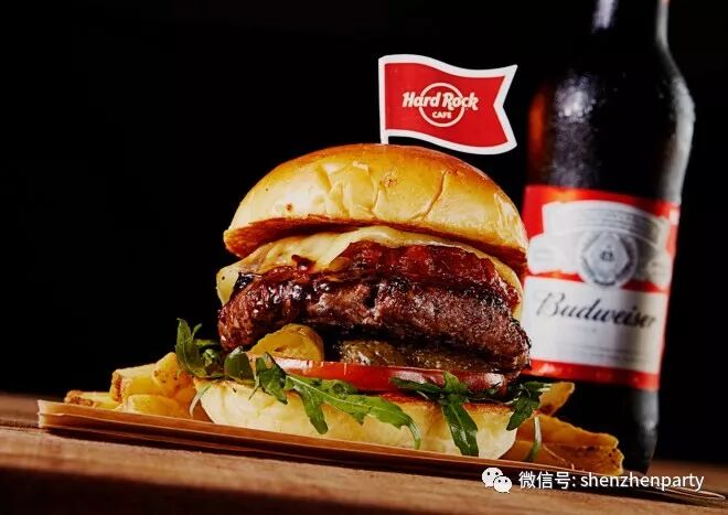 为庆祝百威风暴电音节,深圳Hard Rock硬石餐厅特别推出正宗美式百威汉堡。美味酷炫的汉堡搭配秘制百威烧烤酱,汁鲜味满,一经推出便广受追捧。2017年11月27日至2018年1月26日,深圳Hard Rock硬石餐厅将紧随上海和杭州两地硬石餐厅的步伐,推出百威汉堡套餐,含一个汉堡一杯生啤,售价为人民币138元,需另加15%服务费(含6%增值税)