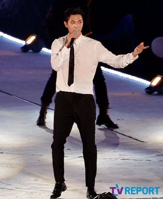 郑允浩:"好久没有站在这么大的舞台了,所以我很紧张。作为东方神起的一员,一个人站在舞台上,有点小担心呀~ "(翻:仙后小镇大韵)
