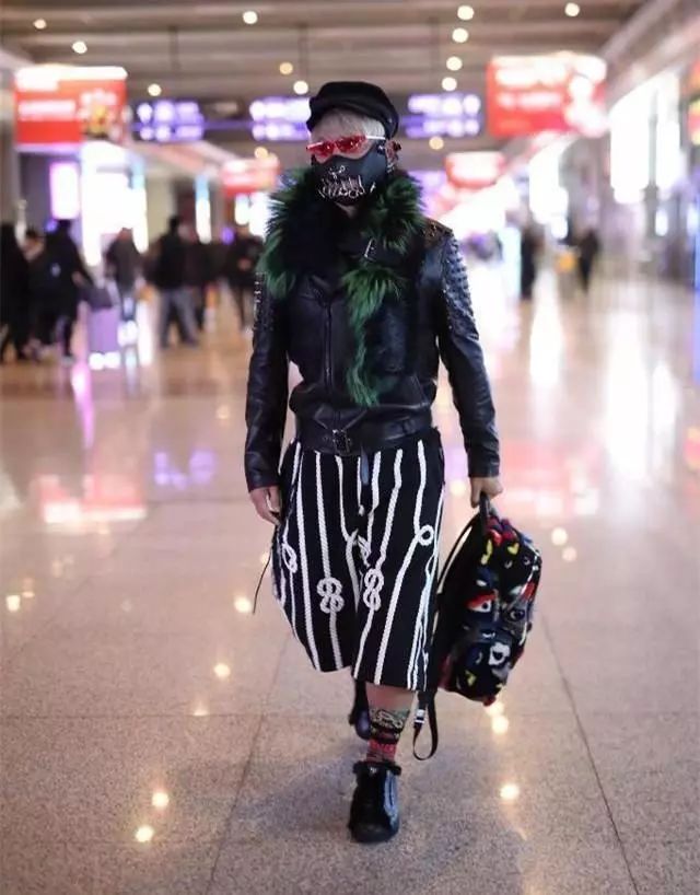 陈志朋现身某机场,身穿一件黑色毛领皮夹克,下搭一条黑白条纹宽松短裤,脚上一双黑色带毛鞋子露出花纹红色长筒袜,红色墨镜真是太抢眼了,小编只能说你的时尚我不懂,你的美我欣赏不来。