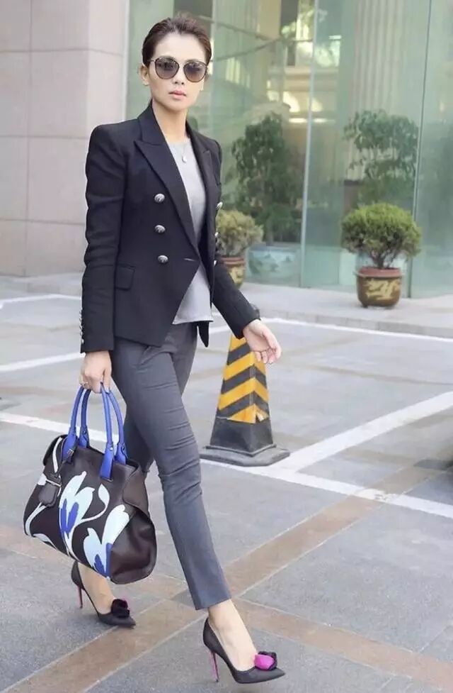 帅气的裤子搭配衬衣或者是西装,演绎女人知性干练的气质。帅气风完全不输任何人