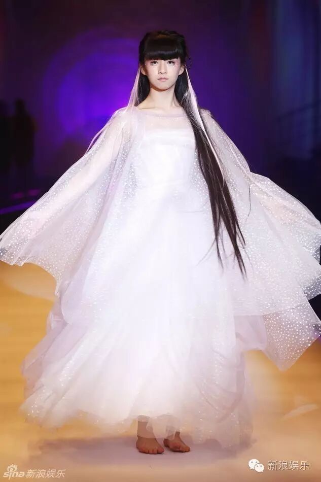 杨紫,小小年纪也是参加过走秀的人呢。当时她的画风是酱婶的,穿着婚纱,蛮美哒