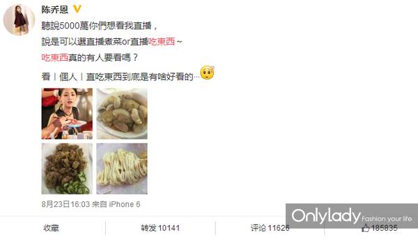 陈乔恩在节目中爆料自己“我没有什么是不喜欢吃的!”如此的坦诚也是醉了。