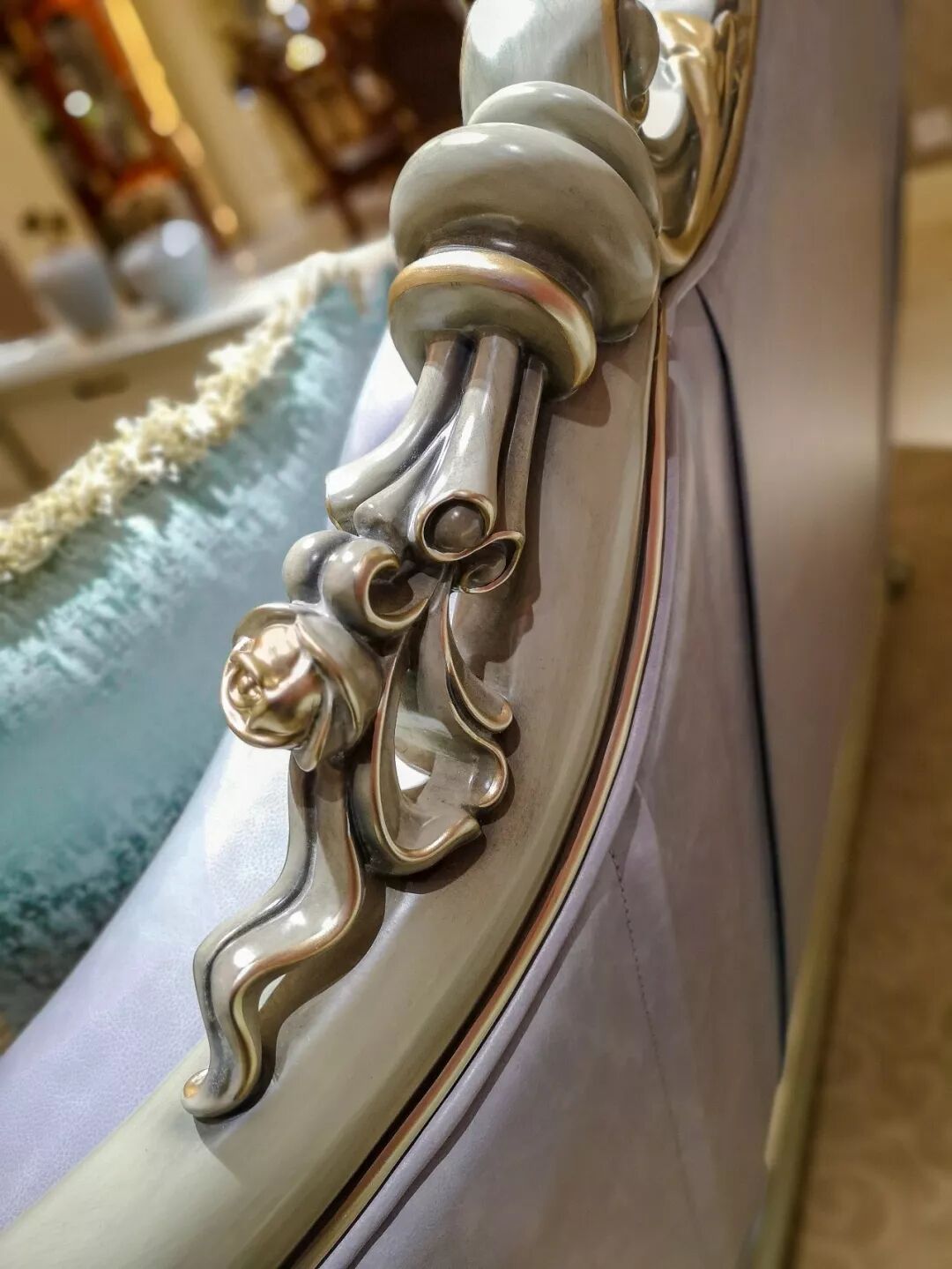 在流畅的线条之中,金莎翡翠绿系列采用手工精致雕刻,保留典雅的造型与细腻的线条感,使家具多了一份典雅的韵味。