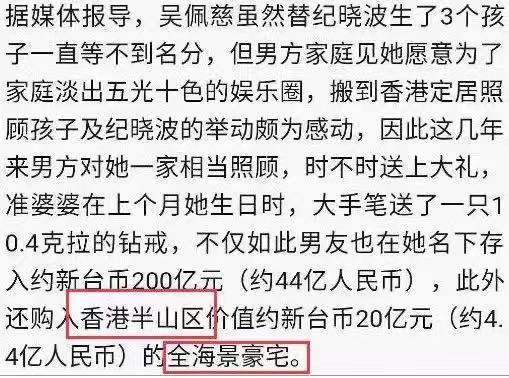 吴佩慈的豪门梦,终究成了笑话 吃瓜有料 港台女星 2019-12-28 12:39:29 634 创作不易,用心坚持,欢迎请BaGua喝几杯爱心咖啡!打赏并支持本文 打赏并删除本文 今天我们要开扒的是七仙女中的第五位,吴佩慈。优越的先天条件,造就了吴佩慈的“骄傲”。在其他人都活在大S笼罩之下时,她是七仙女中唯一敢公开跟大S叫板的人。无论友情还是爱情,一直在追逐豪门的吴佩慈都比其他人精彩的多。· 正 · 文 · 来 · 啦 ·吴佩慈能加入“七仙女”完全是凭借美貌。她是转学生,大S见她第一眼,就跟小S说“这女的还蛮正的,把她纳入我们旗下”。以大S当时的“目中无人”,吴佩慈能入了她的眼,足以证明颜值确实不低。到底有多好看呢?大炳曾在《康熙来了》中形容,当年军训的衣服,每个人穿着都很难看,但吴佩慈穿起来,就像美少女战士。然后让男同学看着看着就呆掉,感叹怎么会有人长得那么漂亮。很高的评价了吧。加入七仙女之后,大家也都说,被阿雅拉低的颜值,又被吴佩慈拉回来了。如此有颜有身材,吴佩慈进入娱乐圈,自然是毫不意外。1999年,她发布首张EP《All My Pace》,随即获得“九头身美少女”的称号。之后更是被公司力捧,又在同年连发两张专辑。还曾经和徐怀钰、李心洁、陈绮贞一起出唱片。按照现在粉丝都讲究的番位来看,吴佩慈排第二,还压了李心洁和陈绮贞一头。按道理说也是起点很高了,可惜太轻易到手的吴佩慈并不懂得珍惜。当时连蔡康永都感叹,“哪有人刚得这么多新人奖就不唱歌了啊”吴佩慈轻飘飘地回答:我就出完那一张就退了啊。告别音乐圈之后,公司又给吴佩慈打造了往影视方向发展的路线。2002年,她出演了电视剧《流星花园2》,当年也算大IP。只可惜,第二部拍砸了,收视率一泻千里。不仅如此,在之后的某部戏杀青时,还被导演痛斥不敬业、乱讲话,说吴佩慈是他入行21年来碰到的最难搞的。不过这些对当年的吴佩慈来说,影响都不大。她依旧开开心心地跟姐妹们聚会,也乐此不疲地谈一段又一段恋爱。当时小S在节目中形容吴佩慈。性感第一,高挑第一,美丽第一,白目也第一。至于白目的意思 吴佩慈完美地诠释了这个词。那时候大S很讨厌被人说黑,用尽各种办法美白。结果吴佩慈像是完全没get到姐妹的点,公开说大S就是黑肉底的,用那么多产品也没用。甚至还开始同情大S,说她好可怜,一生出来就是黑肉底,不像自己生出来就是白。满满的优越感也就算了,还忧心忡忡地跟大S说怕自己嫁错老公,也生一个黑肉底小孩。气的大S,想把她推到马路中间被车撞。还不止于此。当时的姐妹团中,吴佩慈算是唯一有能力和大S一较高下的人。连吐槽能力满格的小S都说,班上的第一美女,只有吴佩慈和大S竞争。2005年,两人同时参加芭比奖的评选,最终吴佩慈击败大S获奖。(好想吐槽这个名字)一般情况下,身为好姐妹,多少要谦虚一下,或者表示下安慰吧。吴佩慈偏不,她还在之后的采访中说,自己养了一条狗叫做芭比,然后又提到大S的英文名也叫做芭比。单说哪一条其实都可以理解,但是前后说出来,就让人感觉,是真的挺白目的。估计又把大S气的“内伤”。即使这样,也没见她解释,多年之后上节目,还觉得自己根本就是活脱脱的真人“芭比娃娃”。不知道她们怎么对芭比的执念这么深,搞不懂。怼完大S,吴佩慈也没“放过”小S。在节目中直接往小S的伤口上撒盐,嘲笑她矮个跟侏儒。这种“不过脑子的毒舌”还延续到外面。有次他们姐妹几个去按摩,吴佩慈的妈妈刚好打电话过来,结果她接起来第一句就是:“我们在这边给瞎子按摩啦”。还有一起去看话剧,吴佩慈觉得难看,就直接大声地说,我要吐了我要走了。丝毫没有考虑到她说的这些话会给别人带来多大的伤害。也许上天总是公平的,给了她美丽的皮囊,却没有足够的聪明和情商。包括大小S和范玮琪因为干妈的事情产生隔阂,小S也一度都觉得导火索是吴佩慈。而且随手一搜,发现吴佩慈真的好爱当干妈。她不仅是范玮琪孩子的干妈。还是大S女儿小玥儿的,梁静茹女儿的,杨晴瑄孩子的...大概她是真的很享受被孩子簇拥着的感觉吧。之后吴佩慈走上追逐富商的道路,最初的姐妹们或成家或在事业上找到努力的方向,也就渐行渐远。说到感情史,吴佩慈的经历也很丰富,目前众所周知的纪晓波,已经是好几任之后的了。最开始,有传言称吴佩慈被陈楚河追过。但却被陈楚河公开打脸,说明明是吴佩慈先给他发短信的。为了撇清关系,还主动爆料吴佩慈初恋是一个年纪很大的人。之后,吴佩慈被拍到和设计师苏点忠逛街,外界传出两人恋爱的消息。值得一提的是,这位设计师还曾是林志玲的前任之一。她和吴佩慈的这段恋情没有持续多久,据说是因为当时还没闹掰的大小S都不太喜欢这一位,于是就听从姐妹们的建议分手了。之后,吴佩慈又经历了施明廷和Peter Chen,两位都是身价过亿的富商,但也都因为各种各样的原因,不了了之。但吴佩慈从没想过放弃。2012年,纪晓波出现了。据传两人是在一场朋友组织的聚会上相识,最开始也只是秘密谈恋爱。被拍到和纪晓波一起吃饭的照片时,还有传言称是吴佩慈开高价陪吃饭。后来纪晓波的身份被挖出来,恋情曝光,当时媒体都说吴佩慈将要晋升百亿少奶奶。可能当时吴佩慈也被即将到来的胜利冲昏了头脑。结果没多久就传出两人分手的消息。要说这段也是一波三折,吃瓜