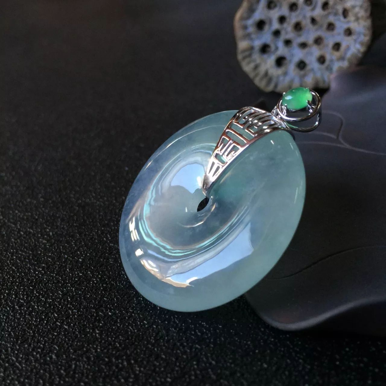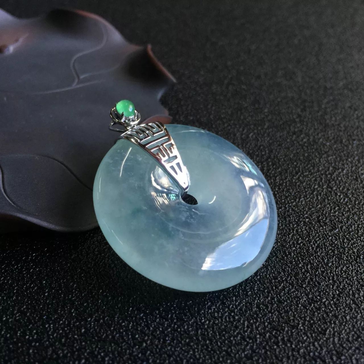 飘花平安扣,质地细腻,整体比较饱满,飘花灵动,18K镶,精致圆润,寓意极佳。