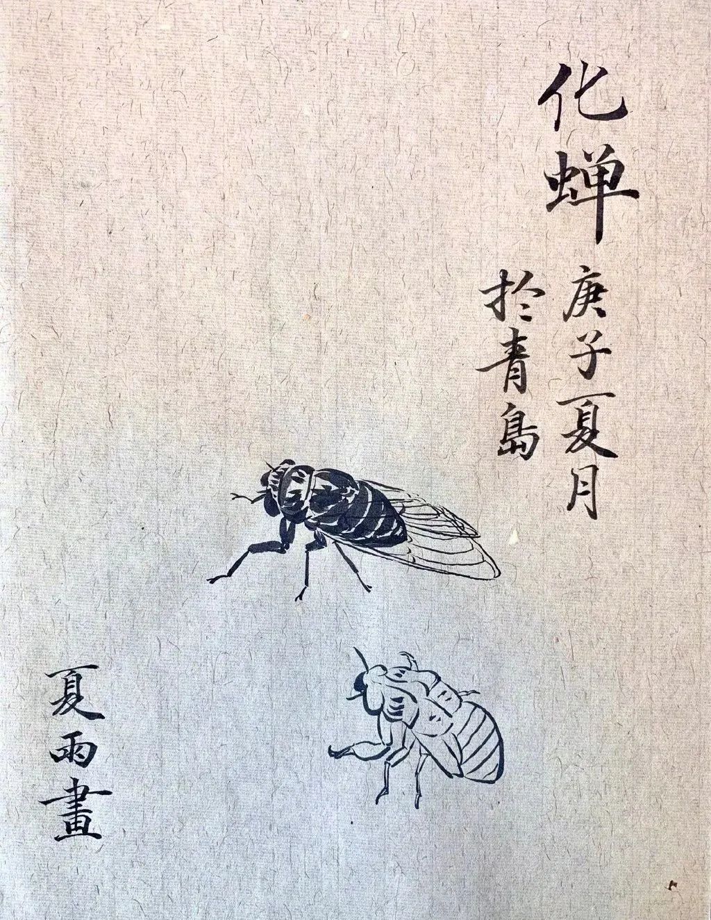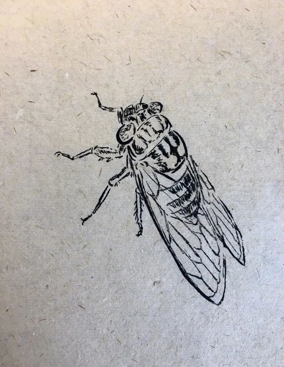 为了画画 这是夏雨 亲手去野外捉了数只蝉回来 便认真仔细观察蝉的外观 然后用线稿清晰画出蝉的动态