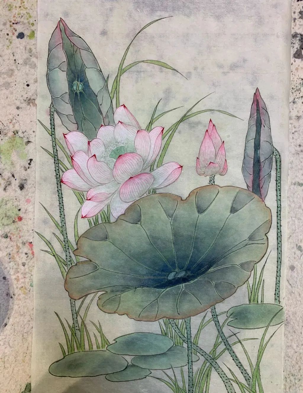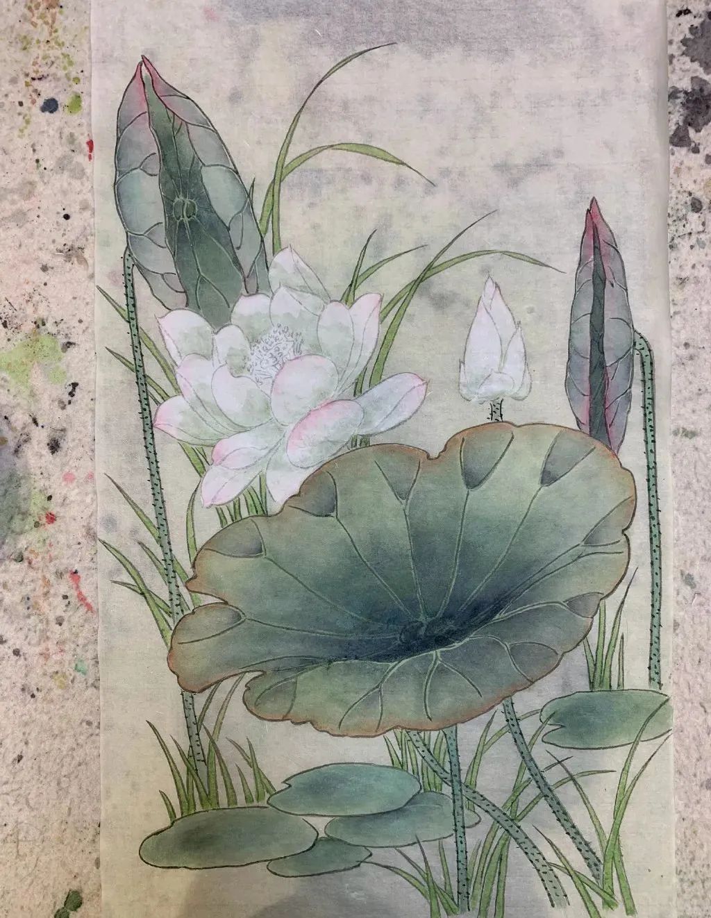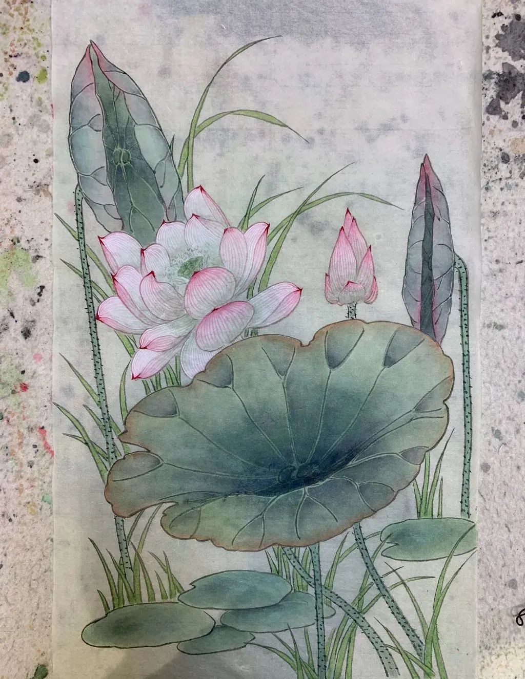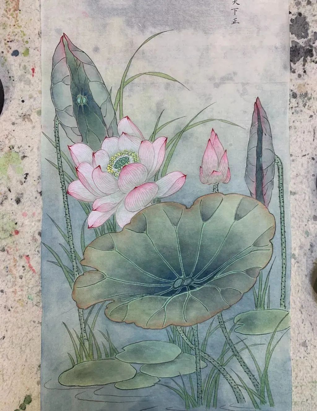 夏雨的工笔荷花 看起来很有视觉效果 过程步骤清晰,笔墨酣畅淋漓 虽然是业余级别 但比很多专业画家强的多