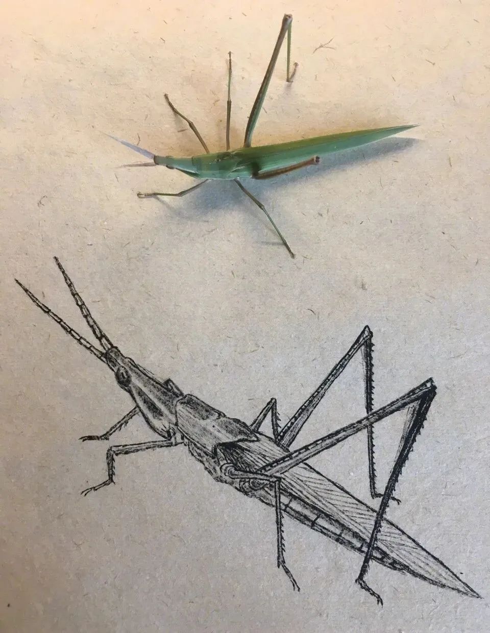 夏雨画的蝈蝈 细长的触角,具有发达跳跃式后脚 增添了几分灵气