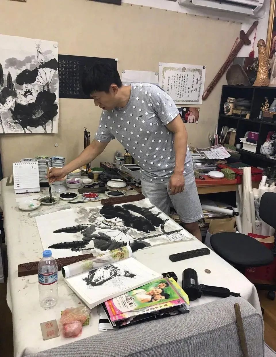 不拍戏的日子 就独守一人宅家写字画画 沉浸在自己的绘画世界里,无法自拔......