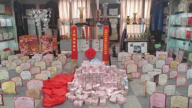 依然是把现金和奖状摆满一地,高调拍照宣扬,同时发文表示:“下半年还要捐款过亿!”