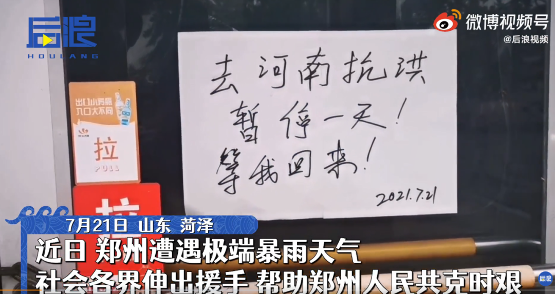 一位山东老板,把店门一关,留了张条子,就跑去河南抗洪。