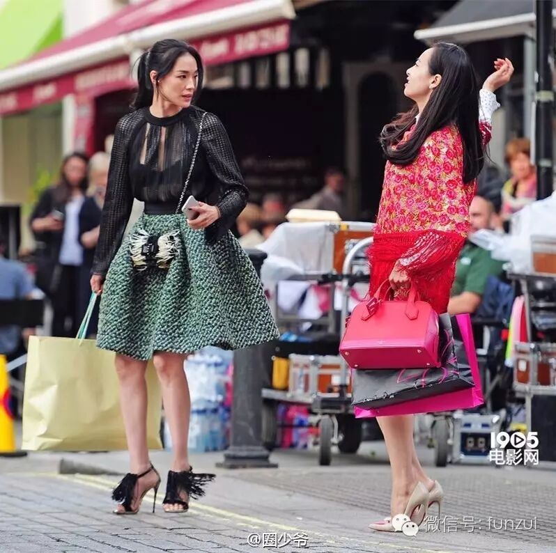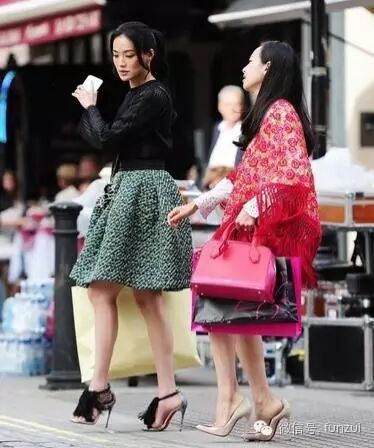 从路透照看出,两人都踩着恨天高在逛街,宋茜穿着一身红,大包小包的跟着舒淇身后,俨然小助理似的。