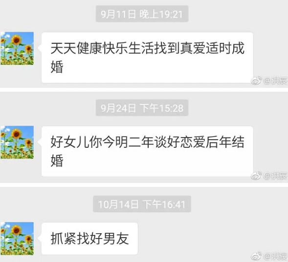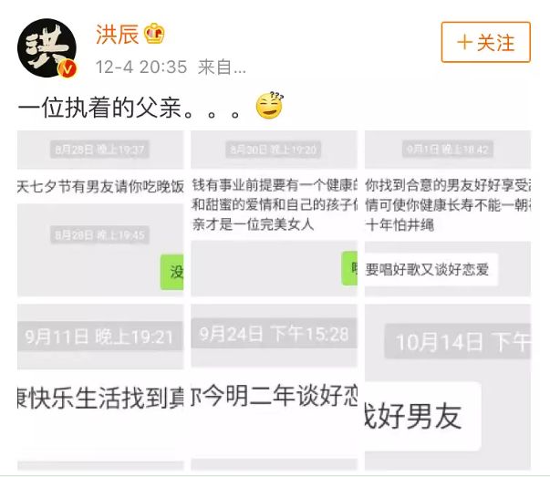 歌手洪辰就在微博吐槽过自己被爸爸花式催婚。