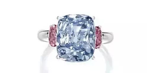 这枚戒指重达6.01克拉,两侧都用白金镶嵌了非常罕见的椭圆形粉色钻石,分别重达0.46克拉和0.44克拉。这枚戒指以1000万美元的价格在香港的拍卖会上成交。