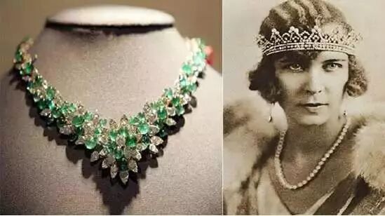 这款光彩夺目的珠宝曾经属于意大利末代皇后玛丽•约瑟。总体来说,这位皇后以大量收藏珠宝而著称。这条项链由50颗祖母绿和许多钻石打造而成。