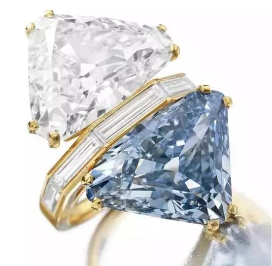 这枚最昂贵的戒指是1972年用宝格丽收藏的蓝色钻石打造的,重10.95克拉,第二枚三角形的钻石是白色的,重9.87克拉。2010年5月,一名亚洲收藏家以1570万美元的价格购得。