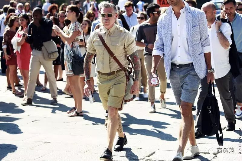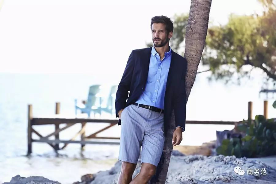 在国外,许多优雅的绅士们也会穿短裤,不过是正宗的西装短裤,虽然长度在膝盖之上,但看上去也算优雅,搭配polo衫或西装都是可以的。