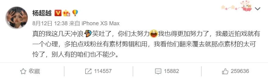 昨天杨超越发了一条微博,就很能说明这个问题。