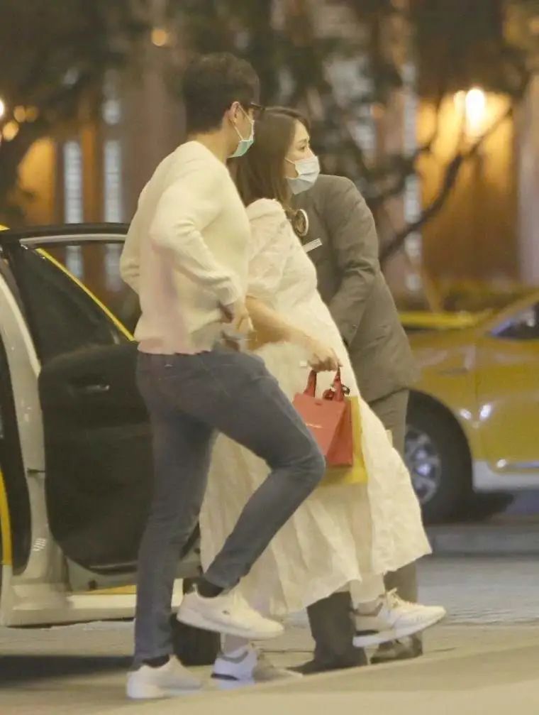 没几个月,有人拍到陈乔恩疑似大肚子带着艾伦一块去参加朋友的生日宴。看那照片,孕相十分明显,平底鞋,隆起的肚子。