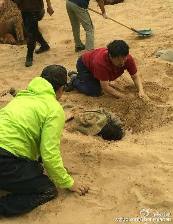 陈乔恩最害怕的,是拍埋进沙里的戏,虽然用毛巾捂住脸,但真正全部被埋进沙后,留好的呼吸空间没了,全部被沙堵住,