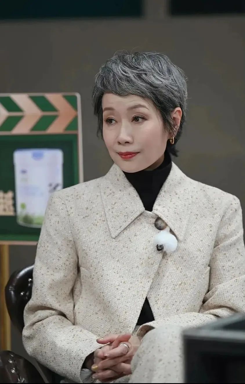年过六旬,她的头发比之前更短,白头发也变多了,看起来更干练利落。