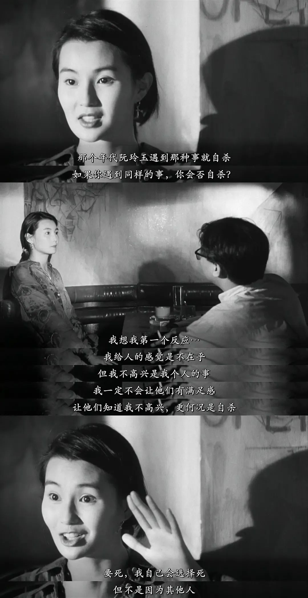 “当时我的确是疏忽了叶童饰演的林楚楚,抑或是梁家辉、刘嘉玲等饰演的几位角色,而是专心把注意力放在了张曼玉的阮玲玉身上。”
