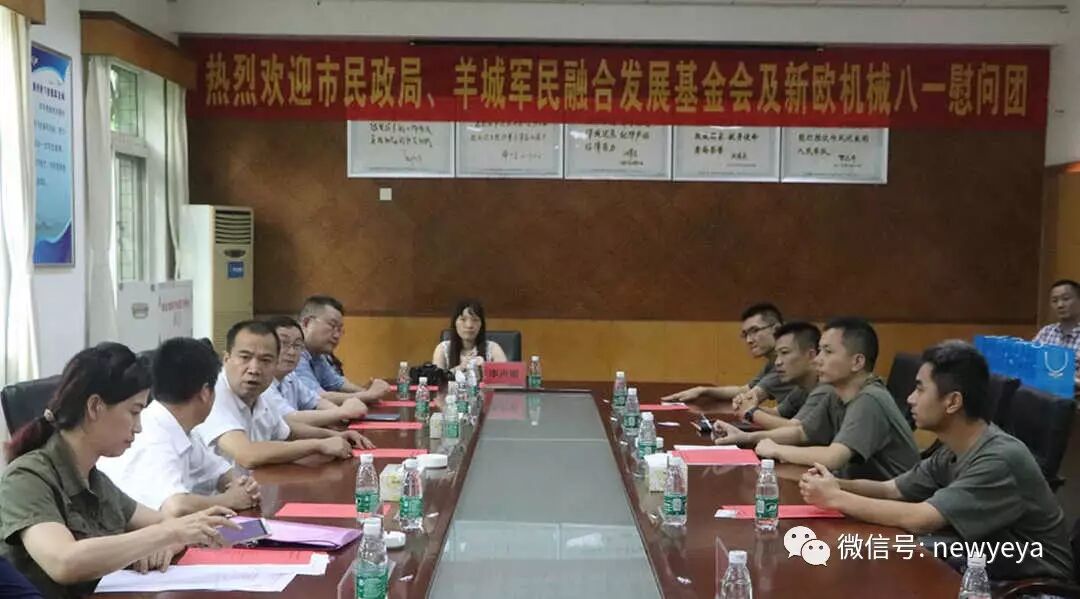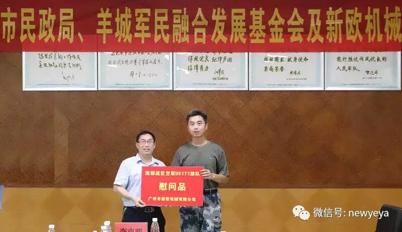 广州市新欧机械有限公司总经理王起新在座谈会上感慨地说, 95171部队长期以来为祖国的航空航天事业作出了积极贡献,值得我们崇敬和学习。国家经济建设离不开部队的坚强保障,企业发展壮大更要饮水思源。不忘初心,回馈社会,是我们企业发展的动力源泉。公司已同广州市羊城军民融合发展基金会签署了战略合作协议,在军民共建、军企合作上共同寻求创新发展之路,今后将与部队广泛开展技术合作交流,把公司开发的新技术、新产品引进到部队使用,为部队基础建设提供优质的服务和帮助,以实际行动为军民融合发展事业作贡献.