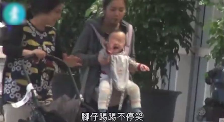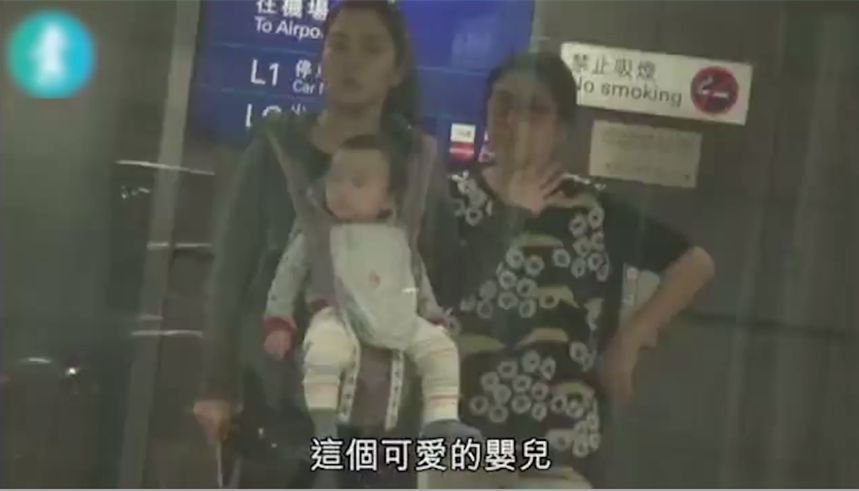 隔咗一会,阿Wing就在亲友陪同下,用孭带抱住囡囡在另一边闸出嚟,坐了十多小时粒钟机,囡囡一样那麽精灵,还不停伸脷仔,一直脚踢踢,跟妈妈一起坳头很合拍,阿Wing捉住囡囡双手,一边唱歌一边打拍子,做黎明个女,怎样能少得唱歌培训?