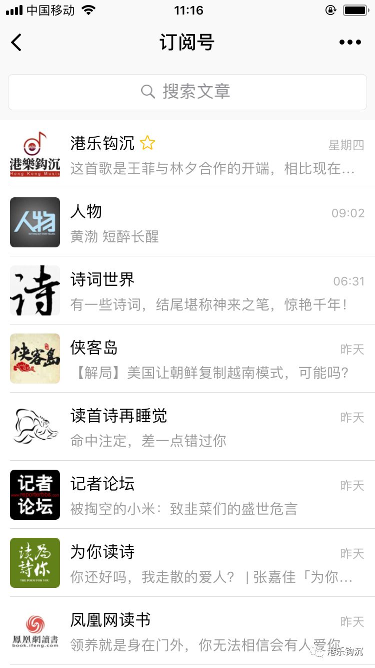 最近,微信订阅号改版,一整屏只能显示两篇文章,连我自己都找不到【港乐钩沉】在哪儿,作为一个技术盲,经过艰难摸索,发现这般操作即可轻松与港乐重逢,了解一下?