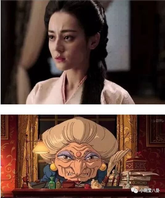 迪丽热巴新剧里头发蓬松的造型很像千与千寻里的汤婆婆,莫名的笑点,你们感受一下。