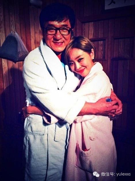 韩女星Narsha1在Twitter上传了跟成龙的抱抱照,二人穿着录影节目时浴袍紧紧相抱,真心甜蜜。