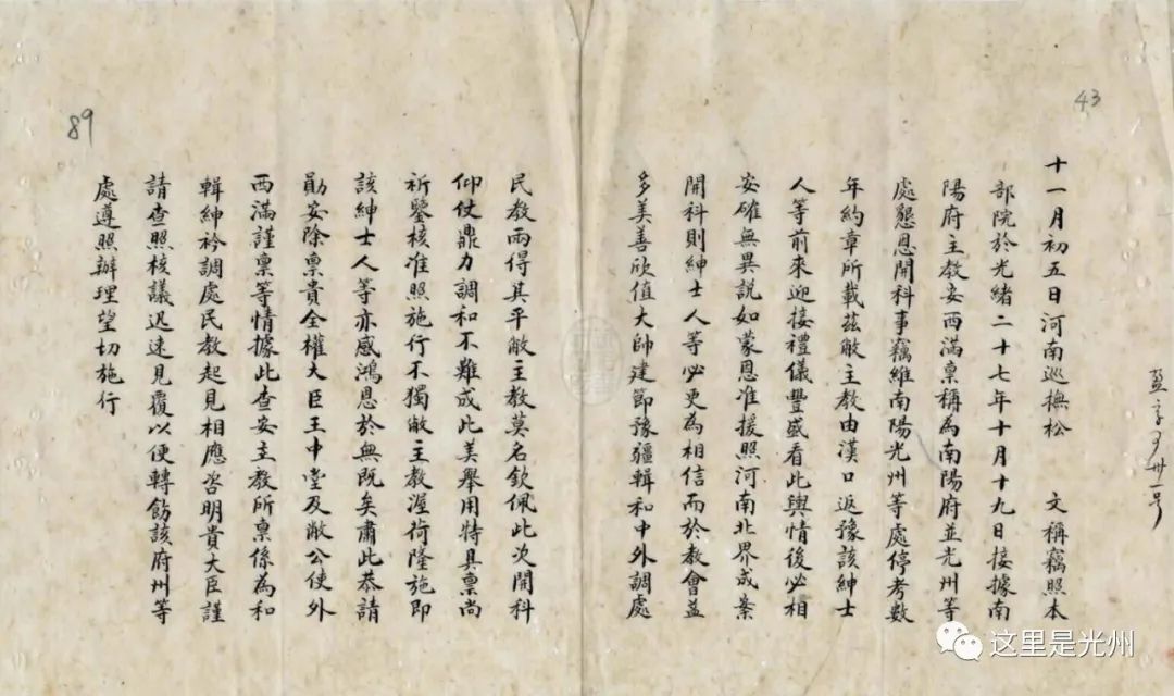 革职留任河南巡抚松寿奏报黄河以南各属法国教案