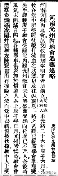 河南光州内地会遇难述略(庚戌夏仲光州教会访稿)